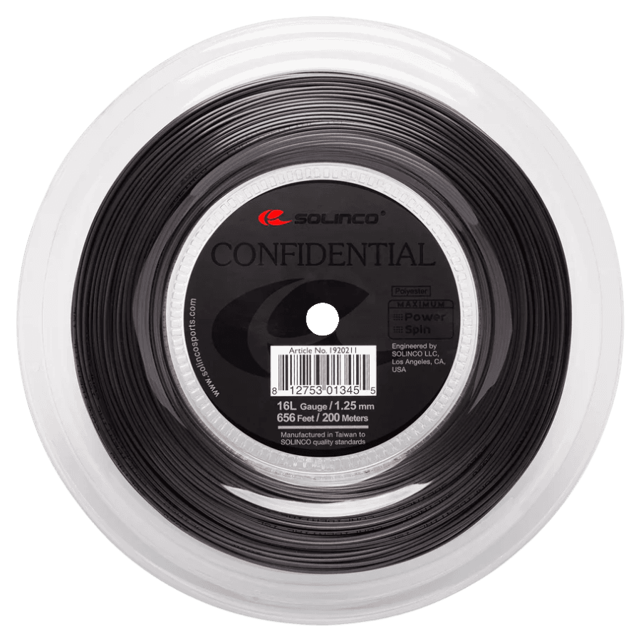Solinco Confidential is a co-poly designed for players who want maximum spin potential without sacrificing control. Its shaped profile grips the ball for aggressive topspin, while its firm feel provides confidence on full swings. Confidential is especially popular with advanced baseliners who want durability and precision in high-intensity rallies.