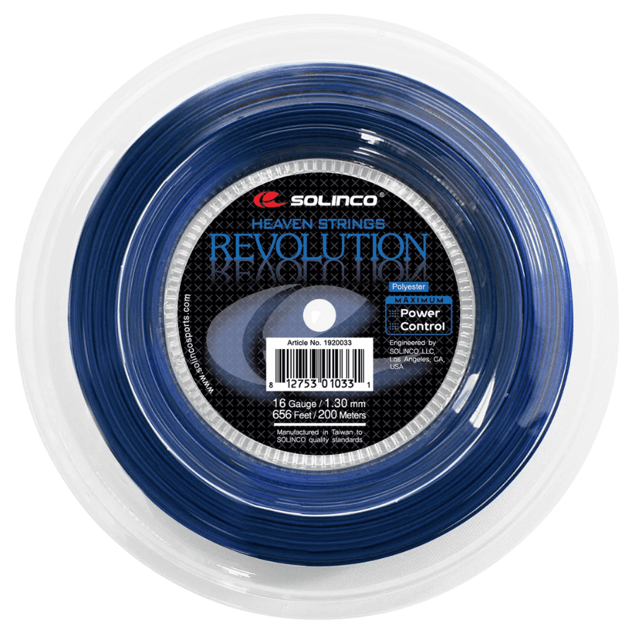 Solinco Revolution is a textured co-poly string that emphasizes spin and control. With a firm, crisp response, it rewards fast, aggressive swings with consistent shot placement and reliable durability. Players who value heavy topspin and a connected feel to the ball will appreciate Revolution’s spin-friendly design and control-oriented performance.